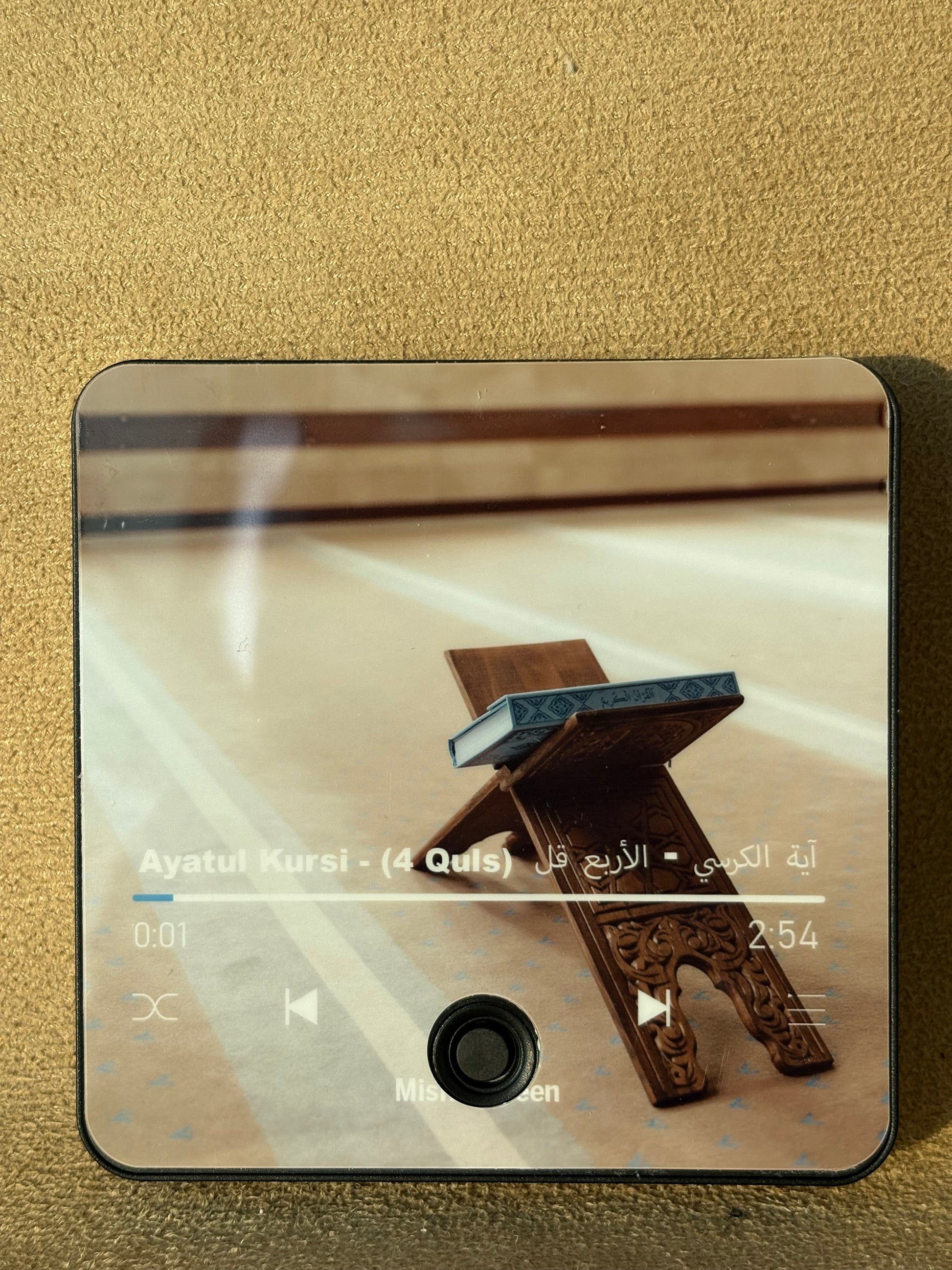 This device plays the recitation of Ayatul Kursi and the Four Quls — powerful verses from the Qur’an known for protection, safety, and spiritual strength.