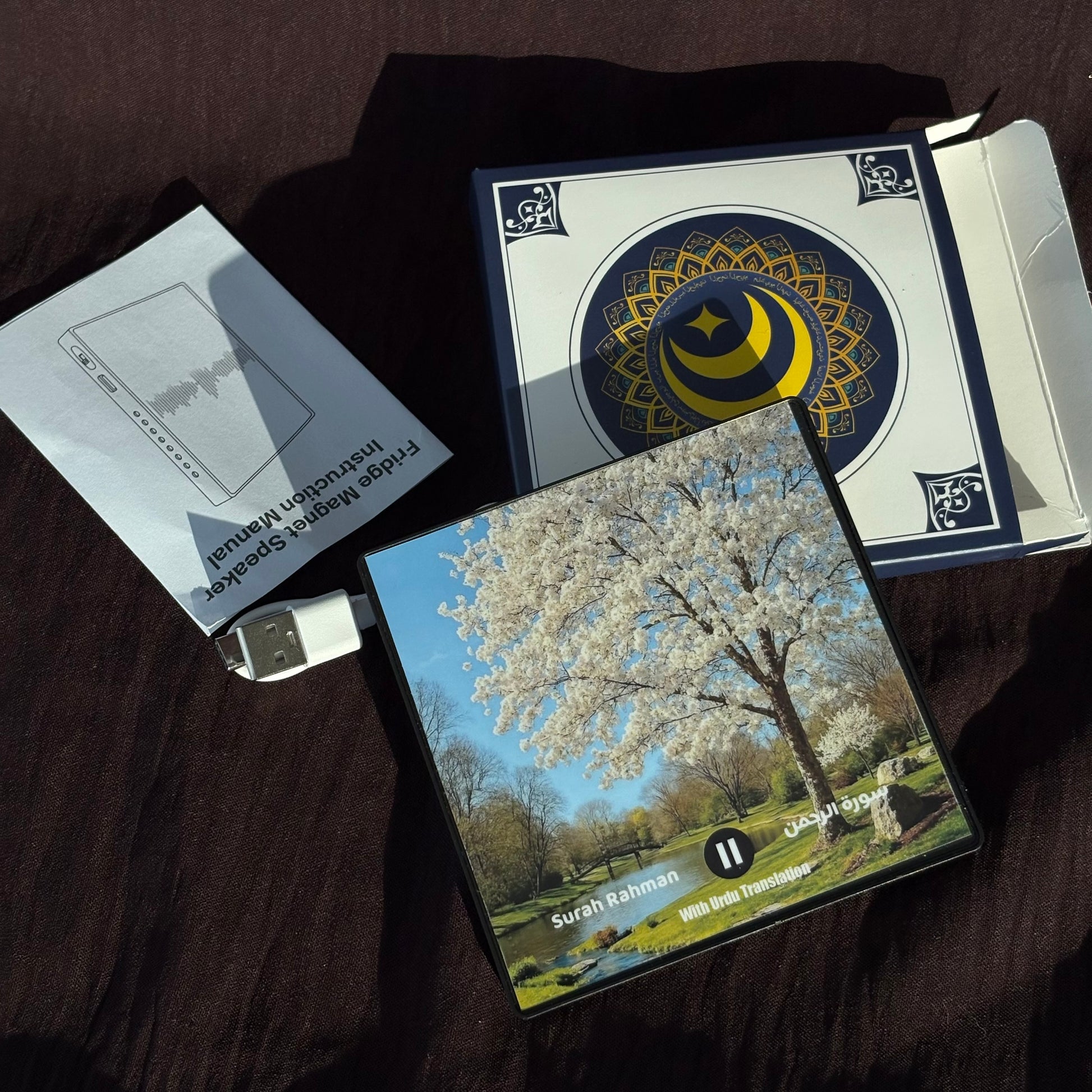 Crafted with durable ABS material and a lightweight design, this magnet doubles as both a decorative piece and a functional Quran player. With long standby time and rechargeable lithium battery, it’s the perfect blend of technology and faith.